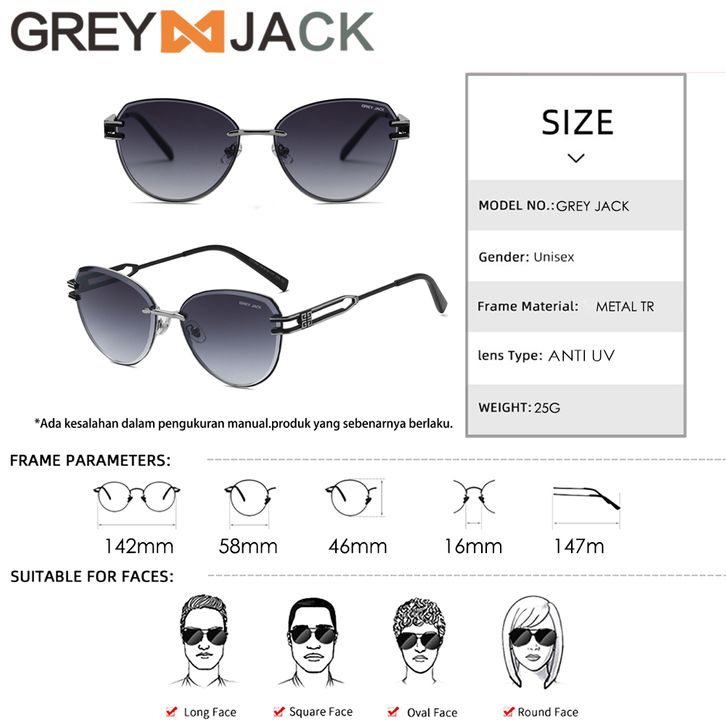 Grey Jack Kacamata Hitam Sunglasses Anti UV400 M0Del Cat Eye Fashion Wanita Keren Design Unik Terbaru 31964