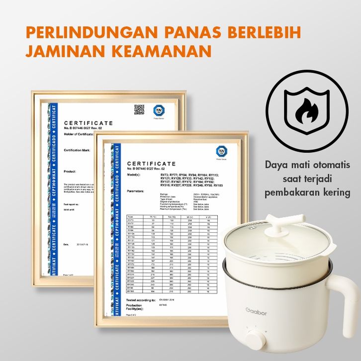 Gaabor Panci Listrik Low Watt Serbaguna Electric Cooker Anti Lengket Kapasitas 1.5L Kukusan Steamer /9r-N15A