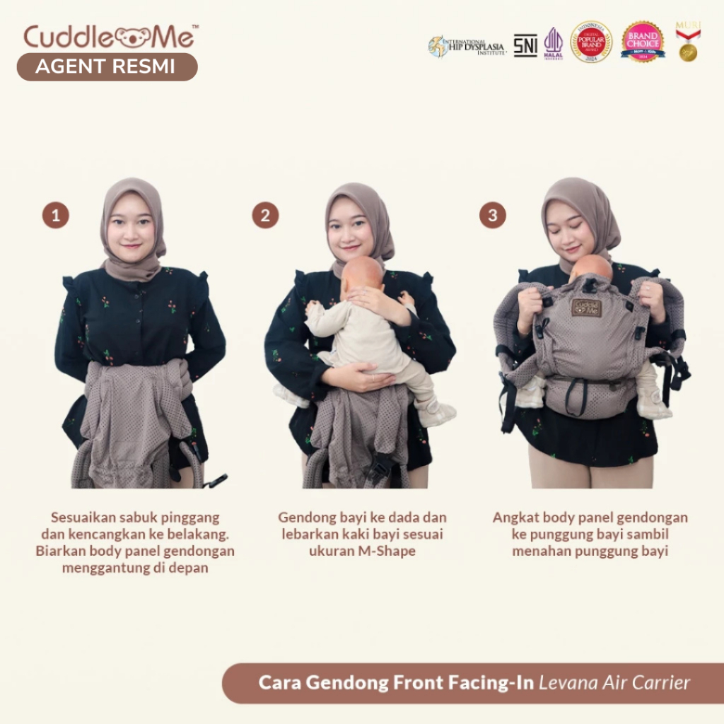 Levana Carrier Cuddle Me Gendongan Bayi Depan SSC Mshape Newborn Aman Nyaman Strechy Anti Pegal