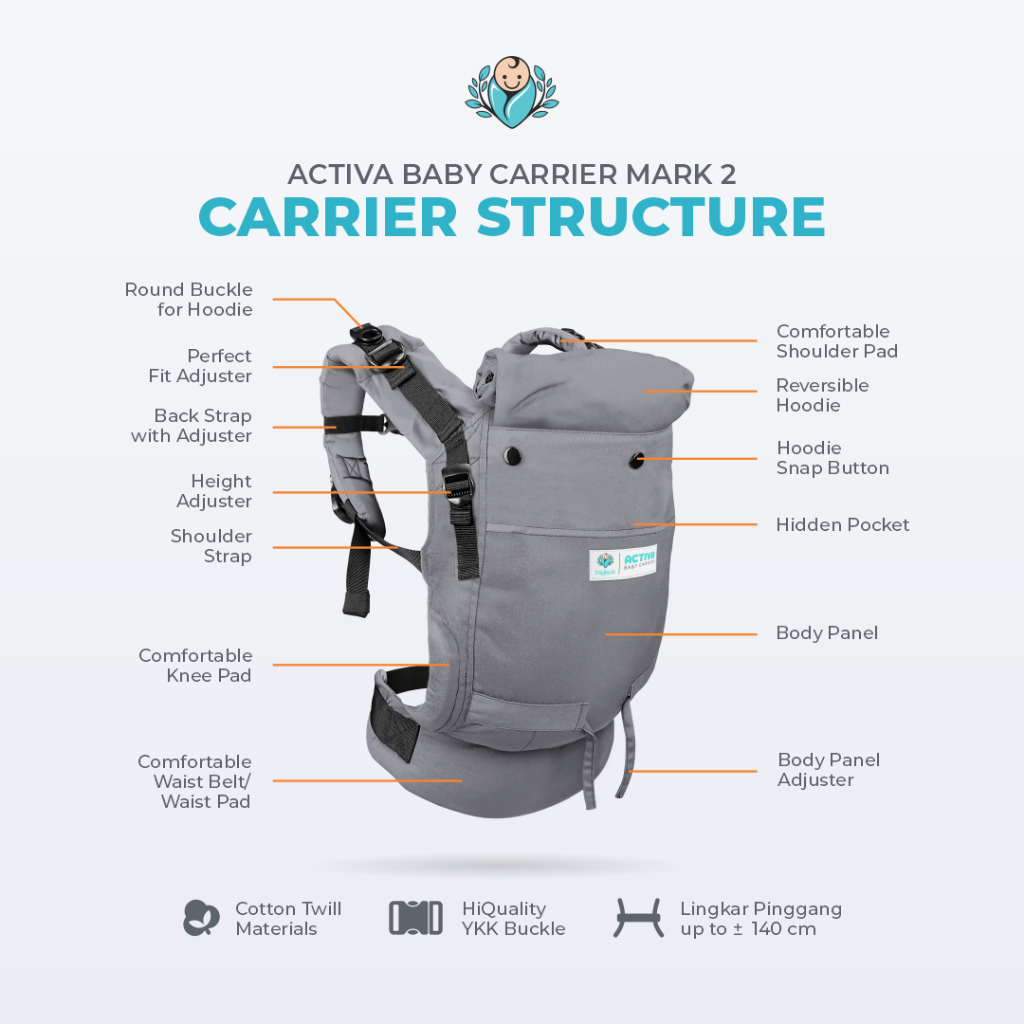 BAYIKU.ID Activa Mark 2 Gendongan Bayi M Shape SSC Adjustable Newborn - Toddler 3 Thn Activa Mark II