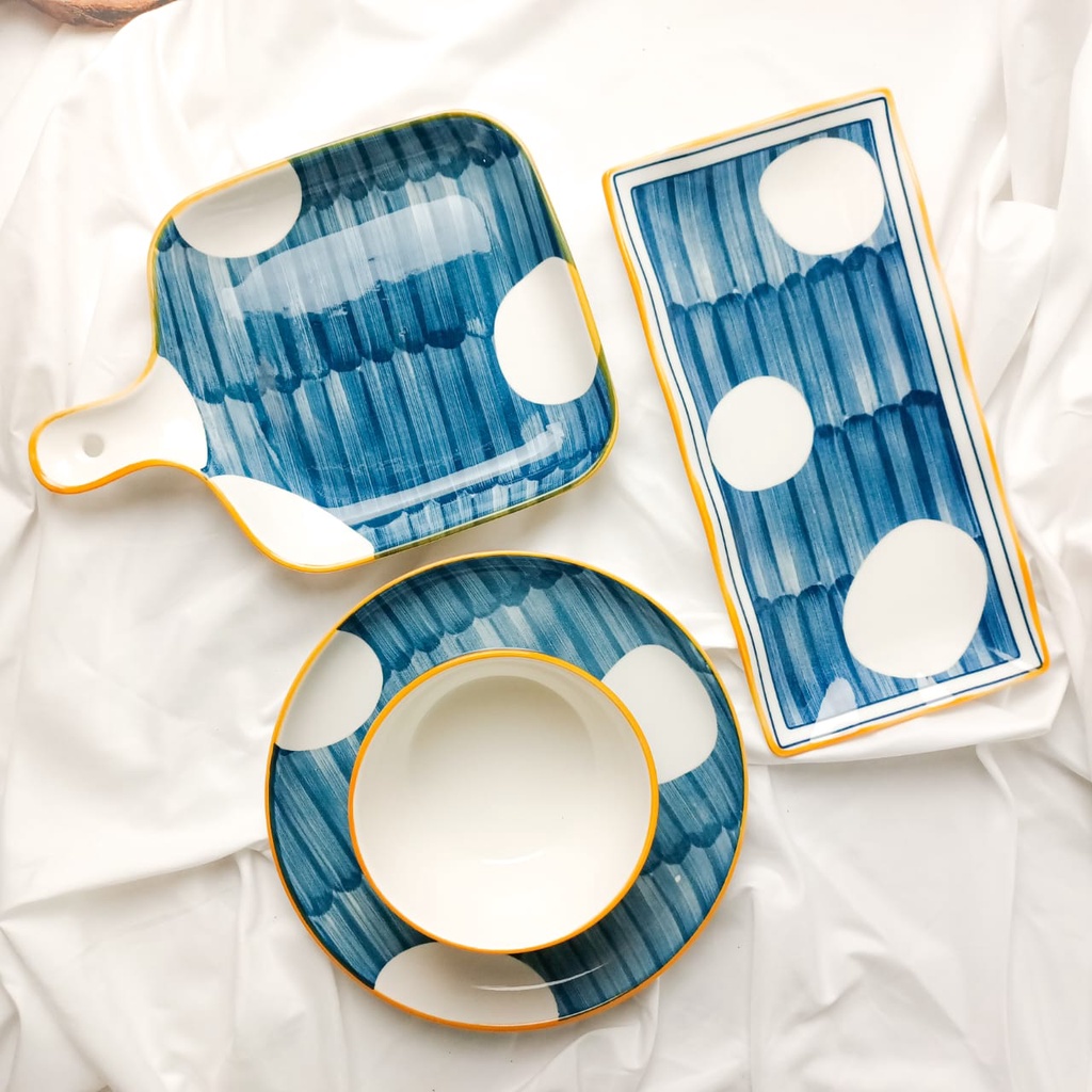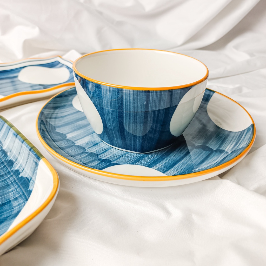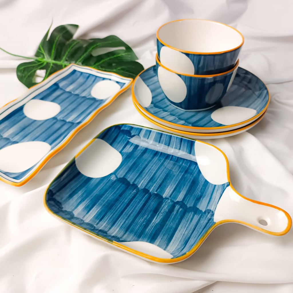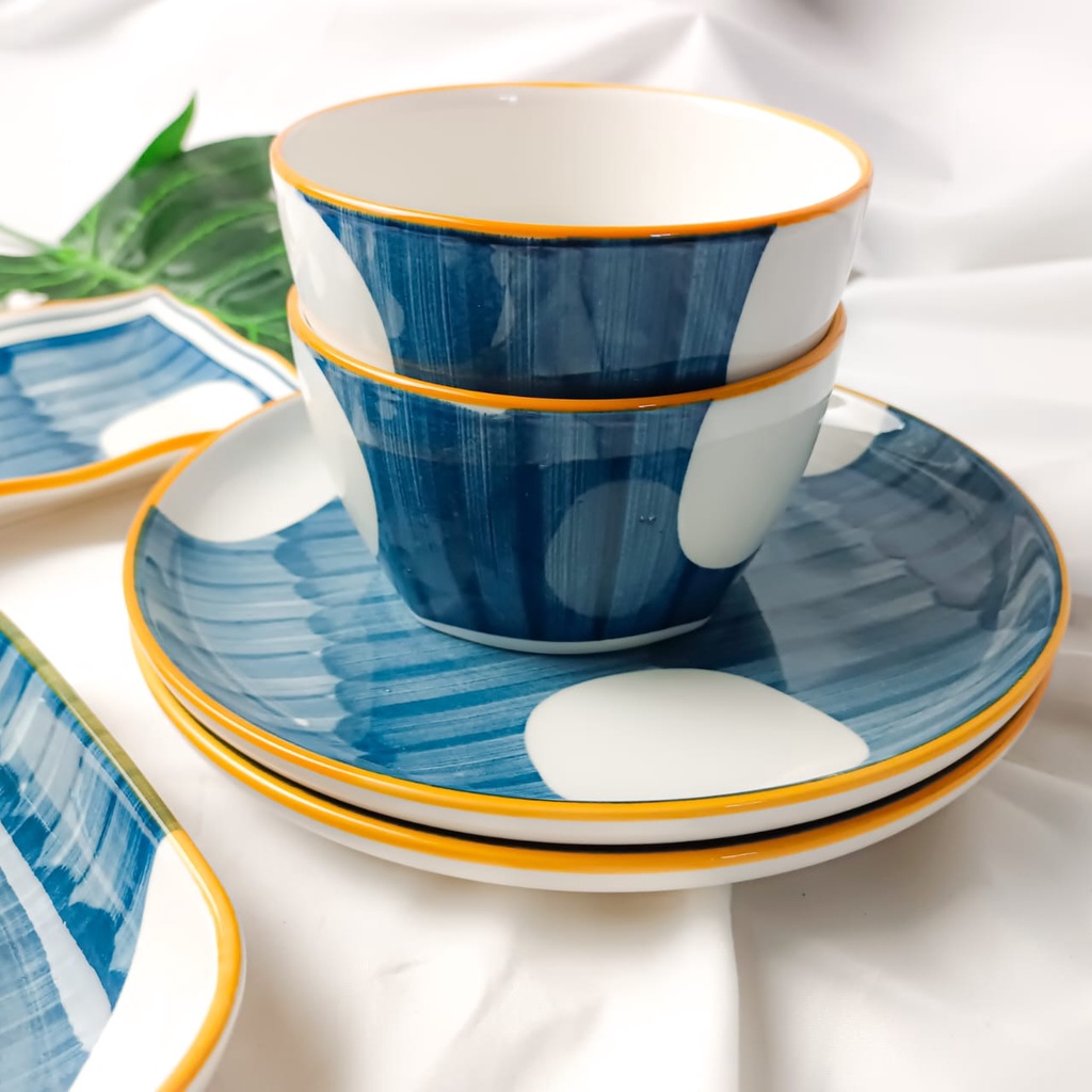 ASHOME Piring Set 2 Orang Piring Makan Bergaya Jepang Motif Kyoto Isi 6 Pcs / Piring Set Keramik Jepang / Piring Set Mewah / Piring Sultan / Piring Jepang / Piring Aestetik / Gift Set / Mangkok Jepang