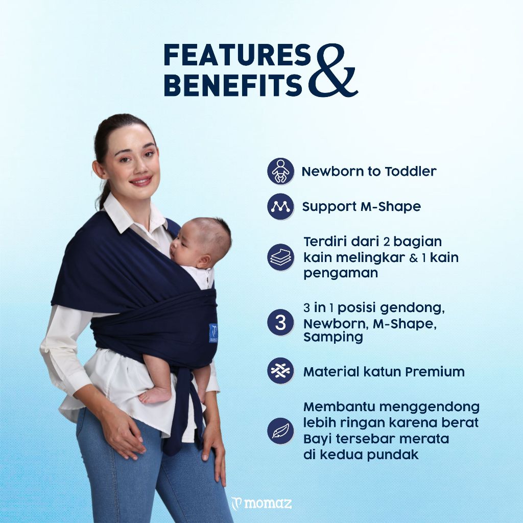 Momaz Gendongan Bayi Newborn - Gendongan Mshape Bayi - Perlengkapan Bayi Baru Lahir - Kado Bayi