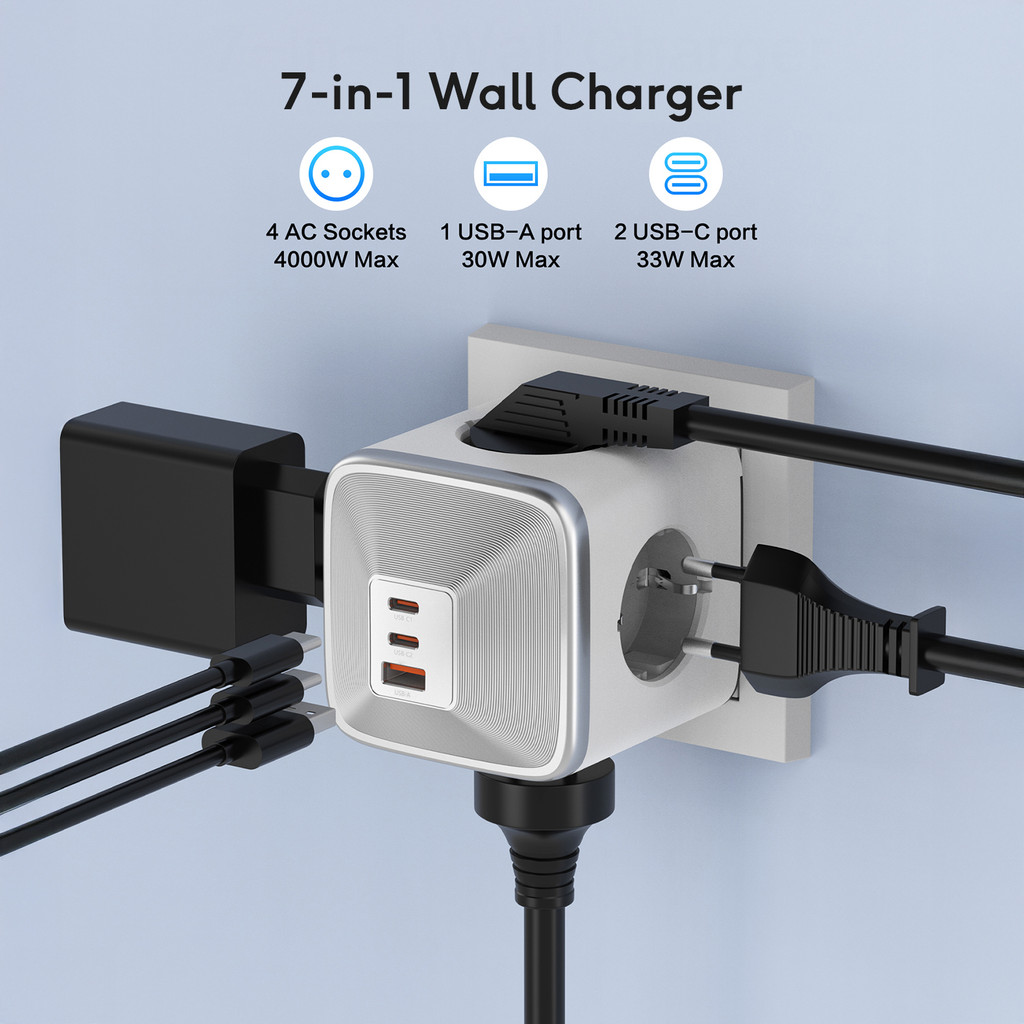 Charger C31T Power Cube Adaptor GaN 33W Charging Adapter AC Socket 4000W