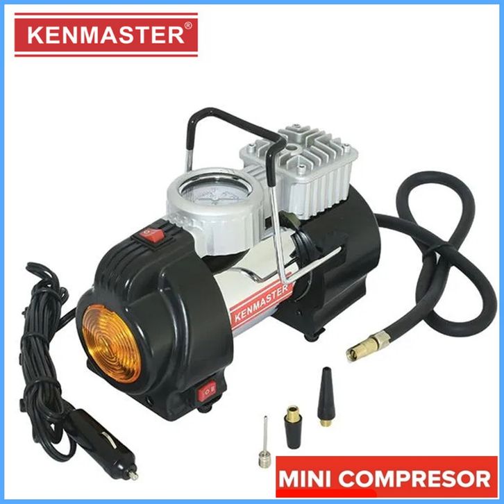 Mini Air Compressor PISTON KM 001 B + Lampu KENMASTER / KOMPRESOR MINI Mini Pompa Angin Ban Mobil Motor