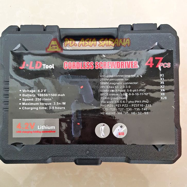 Mesin Bor Cordless Mini 47pcs Set 4.2V JLD / Screwdriver Baterai