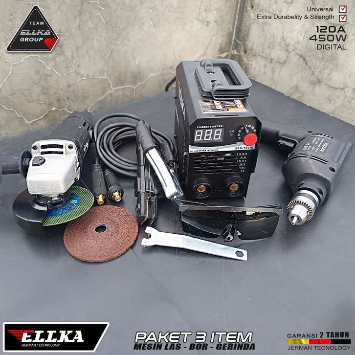 PROMO PAKET 3in1 Mesin Las Listrik 450 watt MMA 120A IGBT 450 watt + Mesin Gerinda 4inch + Bor 10mm FREE MATA SET
