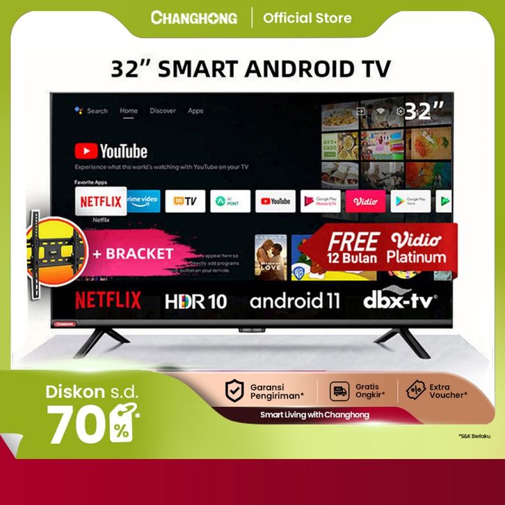 (+BRACKET) CHANGHONG 32 INCH NEWEST ANDROID 11 FRAMELESS SMART TV DIGITAL LED TV HD (L32G7N)-NETFLIX-YOUTUBE