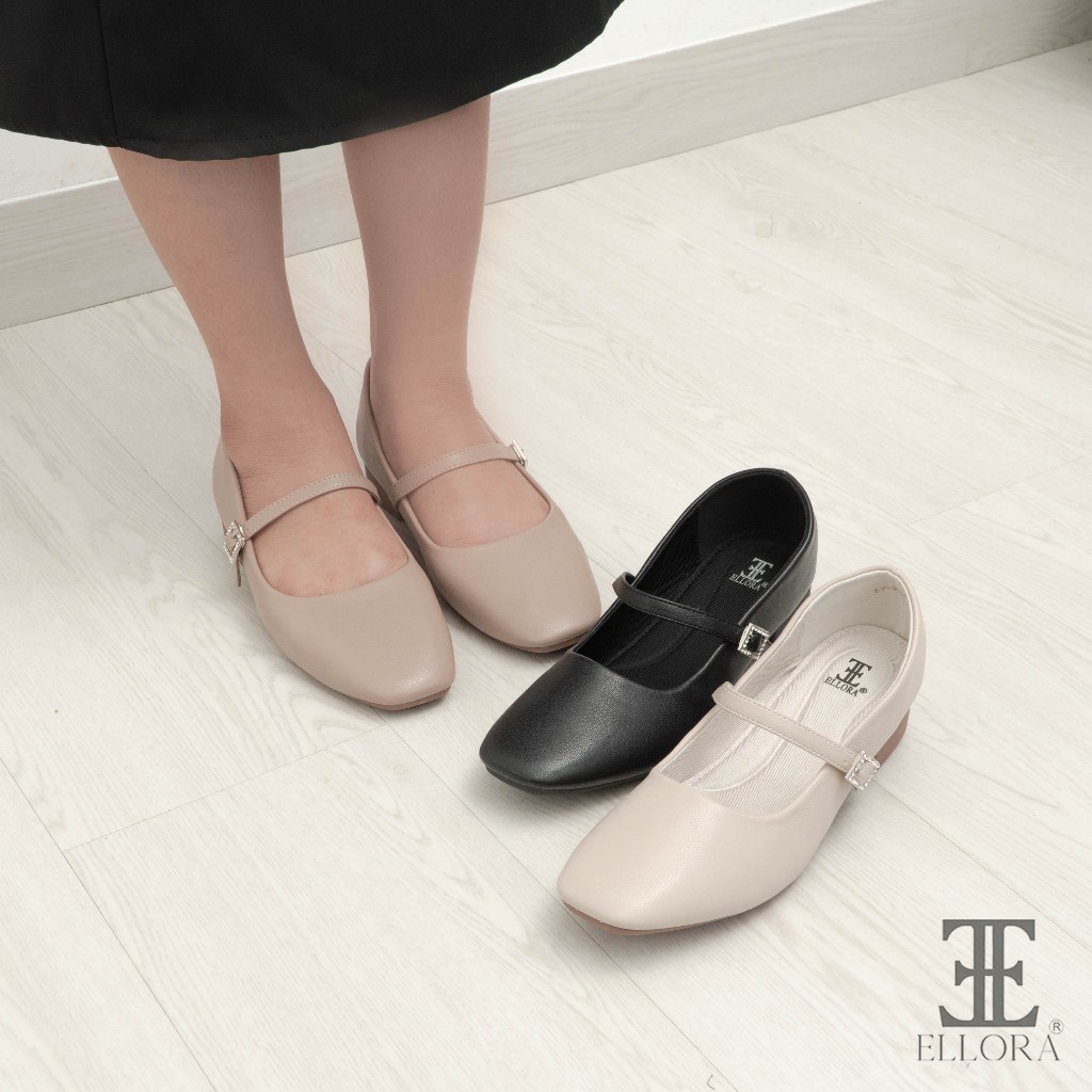 ELLORA EY-3411 Sepatu Wanita Hak Chunky Heels 3cm Mary Jane Import