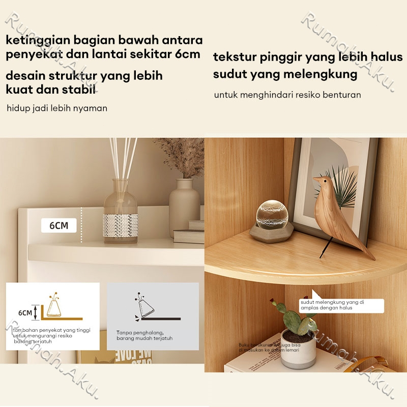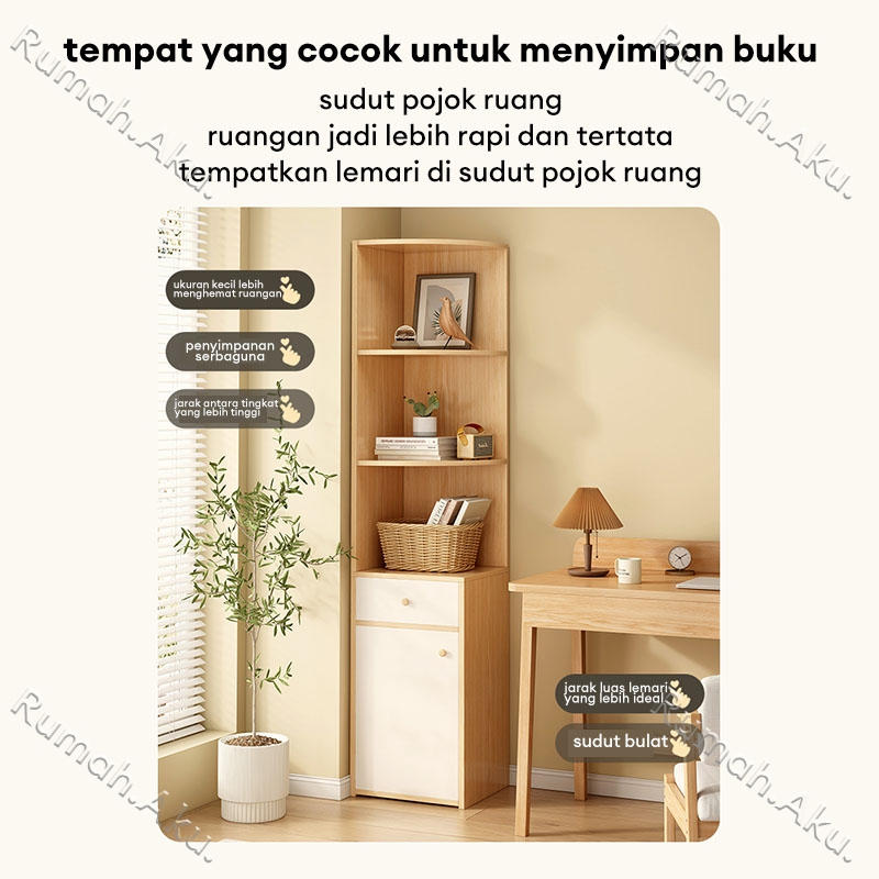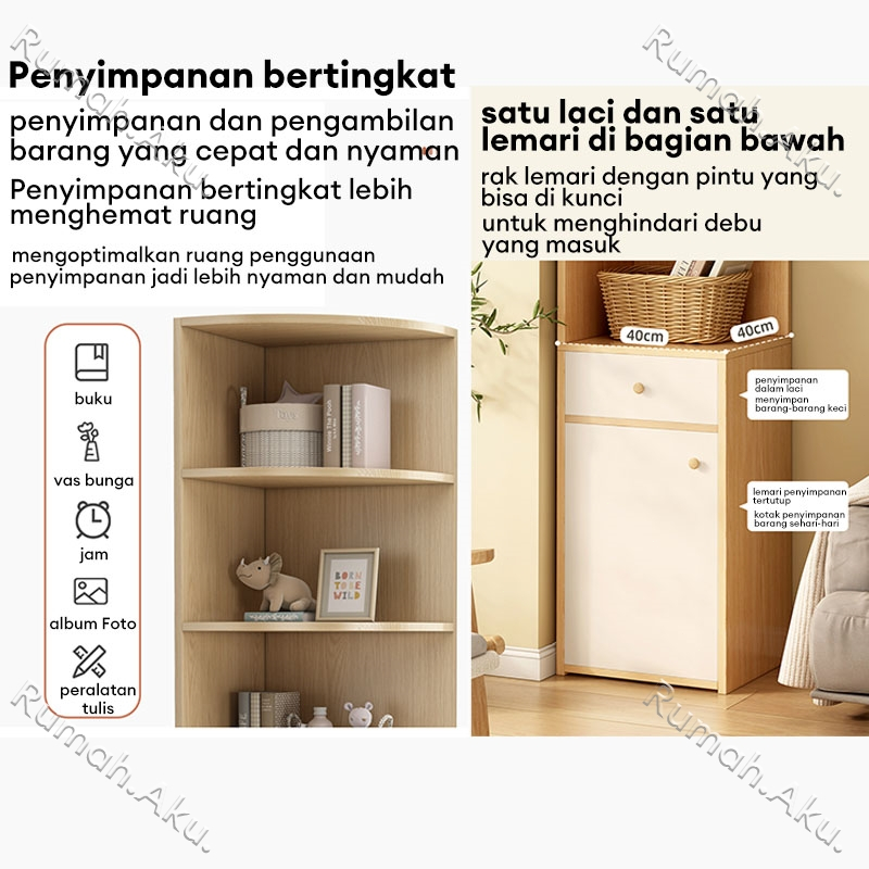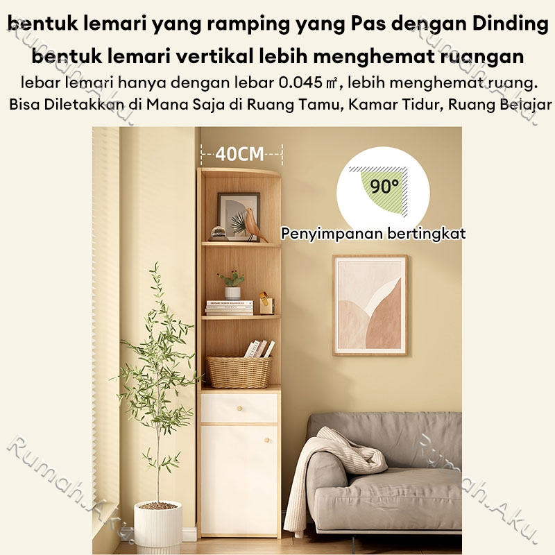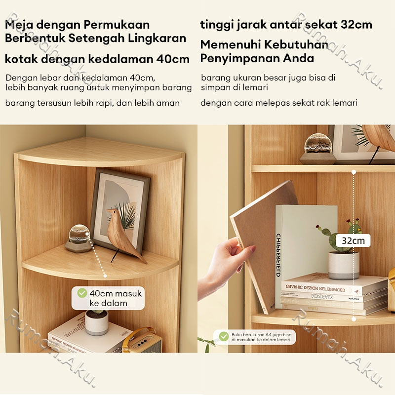 Rak Buku Sudut Rak Buku Kayu Minimalis Serbaguna Rak Buku Sudut Setengah Terbuka Multifungsi Rak Pajangan 40x40x180CM