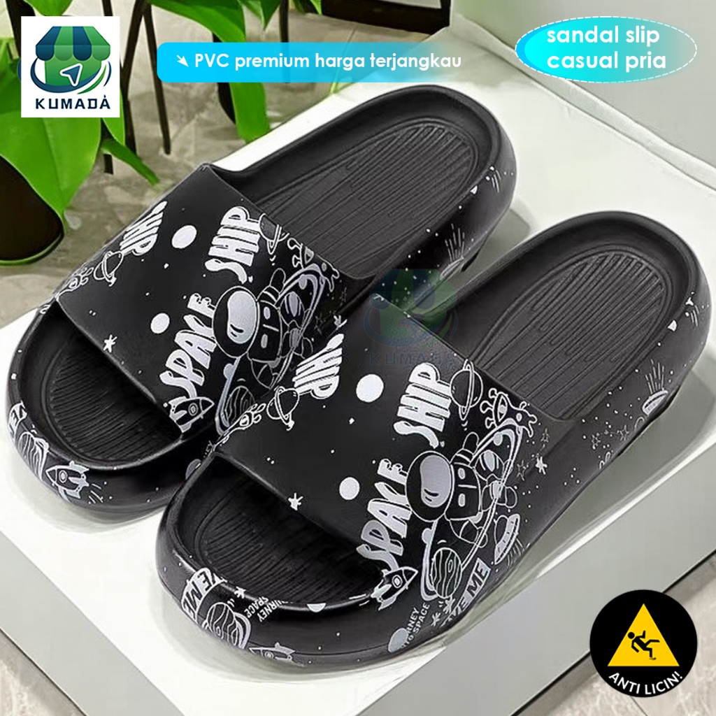 Sendal Pria Keren 2024 Karet Jelly Slop Pria Selop Cowo Flat Rumah Slipper Sepatu