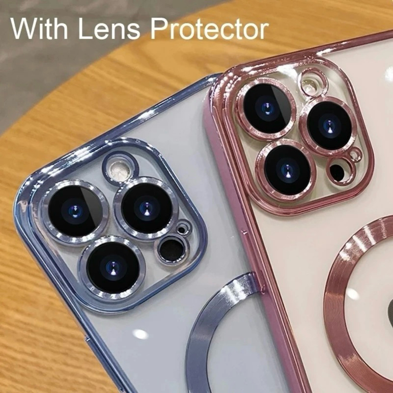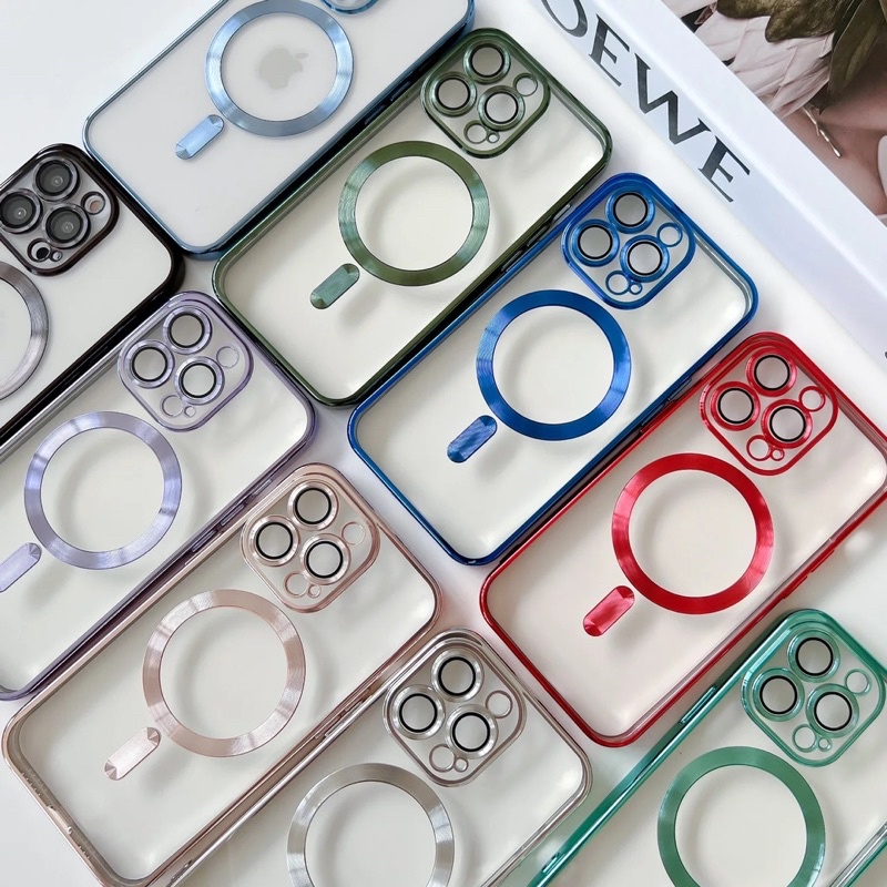 SOFTCASE MAGSAFE ELECTROPLATING METALLIC TPU IPHONE 11 12 13 14 15 16 PRO MAX PLUS CASE WITH LENS GUARD PROTECTOR FULL COVER