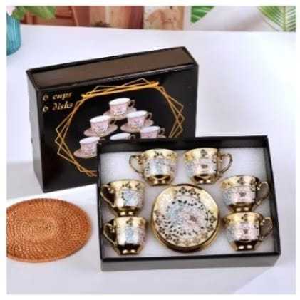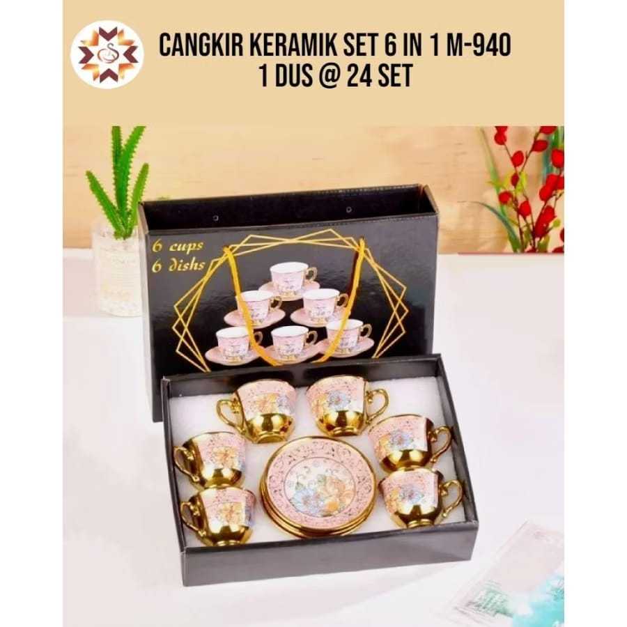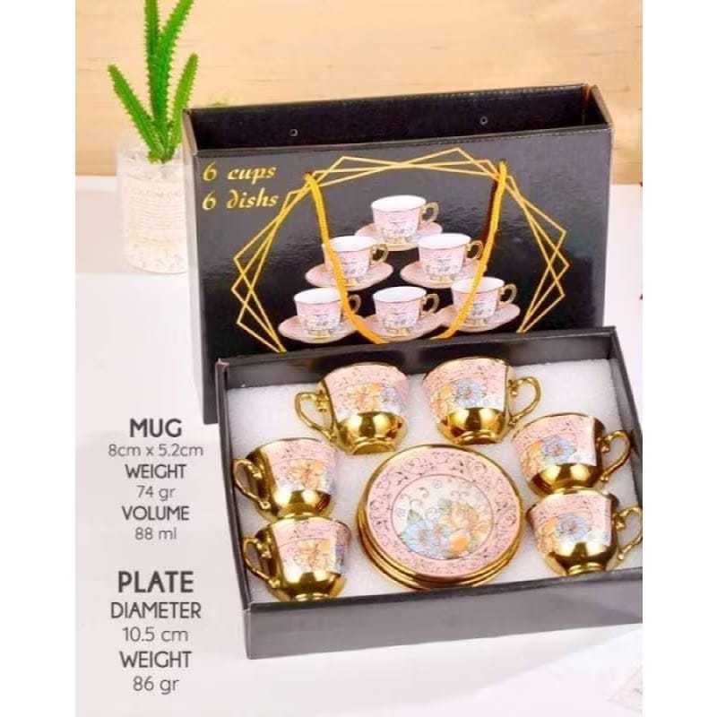 Cangkir Keramik Set Box Motif Eropa Hampers Hadiah Wedding 6 IN 1
