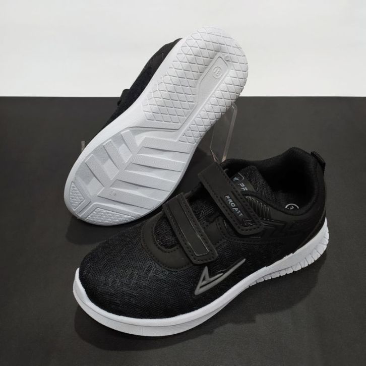 PRO ATT Sepatu Sneakers Sekolah Anak Cowok Cewek Kecil Tanggung Hitam Putih Karet Kretekan Magnet Mgg Size 30-38