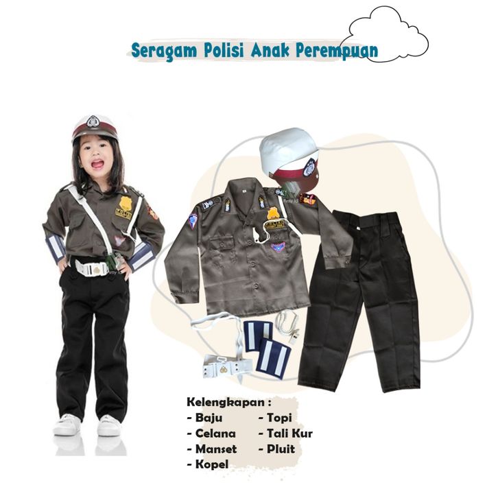 Seragam Polisi Anak Laki laki Perempuan Baju Profesi Kostum Karnaval Pocil TK