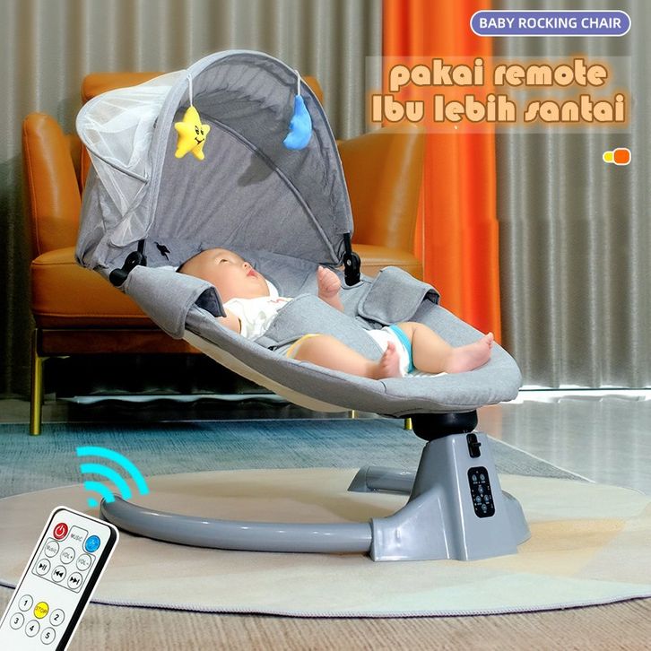 Ayunan Bayi listrik Automatic + remote + Bluetooth + musik +bantal + jaring nyamuk + 2 mainan BY MEBELBINTANGLIMA