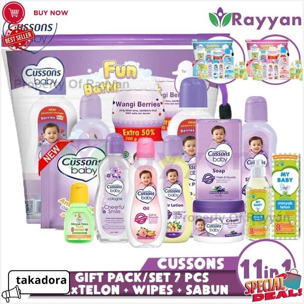 (Cp)Cussons Baby Set Pack 11In1 | Fun Bathing/Complete Essential |Plus Telon| Cussons Baby Gift Set Large Biru/Pink/Ungu