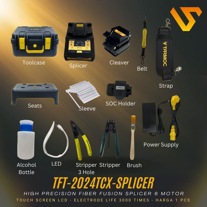 Tarmoc TFT-2024TCX-SPLICER | 6 Motor Fiber Optic Fusion Splicer Alat Splicing FO