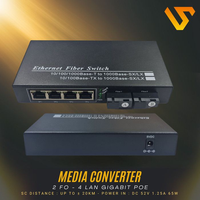 Media Converter 2 Port FO 4 Port POE Gigabit LAN/ 2 FO 4 POE Gigabit