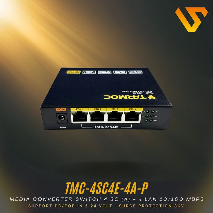 Tarmoc TMC-4SC4E-4A-P | Media Converter 4FO 4LAN 4SC 4LAN 10/100 POE IN (5-24V) 4 SC 4 LAN 4 FO 4 LAN