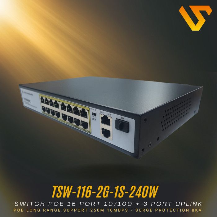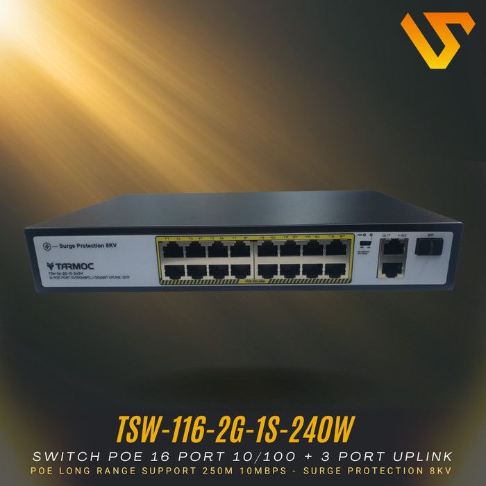 Tarmoc TSW-116-2G-1S-240W 16 Port 10/100 POE 802.3af/at POE Switch