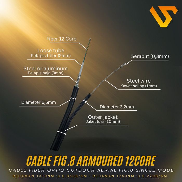 Tarmoc Fiber Optic Cable Fig 8 Armoured 12 Core 2000m | Kabel Fiber Optik Fig8 armored Indoor Outdoor 12C 2km
