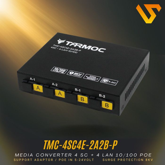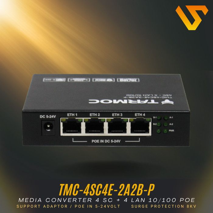 Tarmoc TMC-4SC4E-2A2B-P |Media Converter 4FO 4LAN 10/100 POE IN(5-24V)