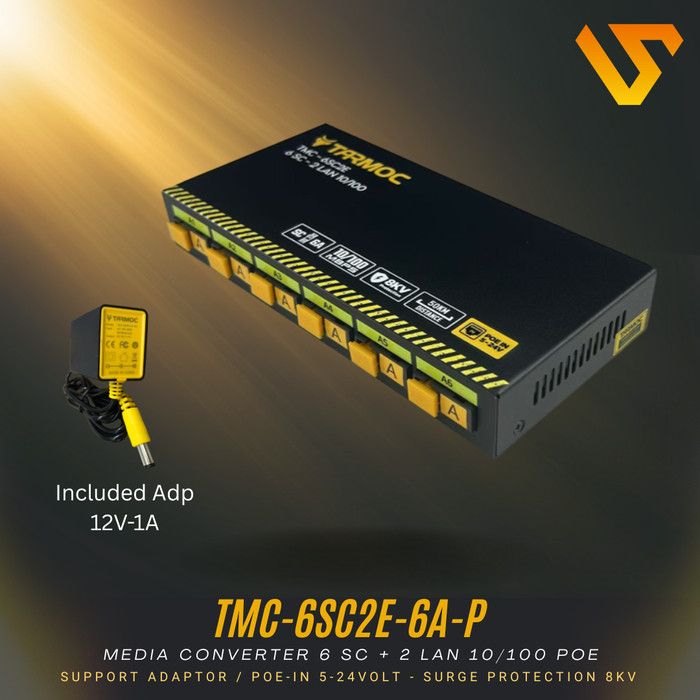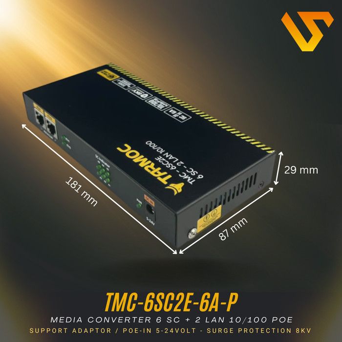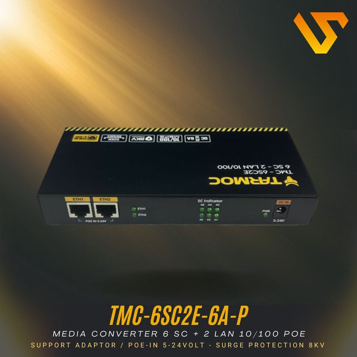 Tarmoc TMC-6SC2E-6A-P | 6FO 2Lan 10/100 POE IN (5-24V) Media Converter