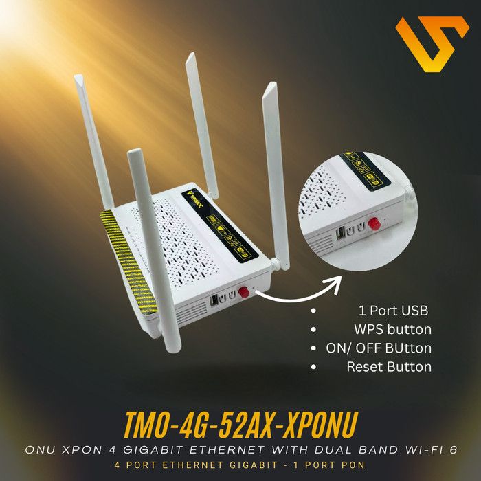 Tarmoc TMO-4G-52ax-XPONU | XPON ONT 4 Port Gigabit, Wifi6 Gpon EPON Wi-Fi 6