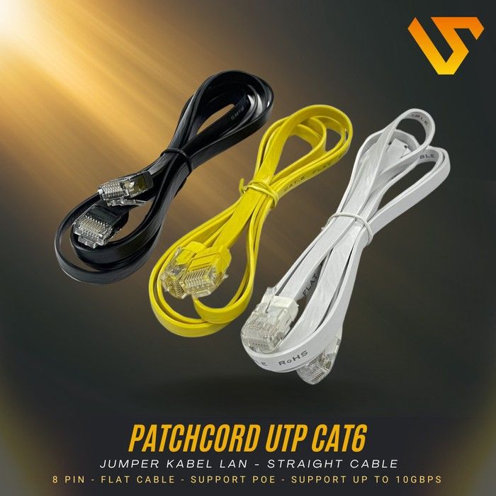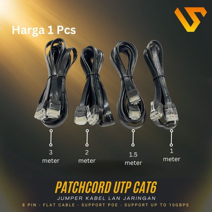 Patchcord UTP Cat 6 Slim Warna | Jumper Kabel LAN Jaringan 1m - 3m - Hitam, 1 Meter