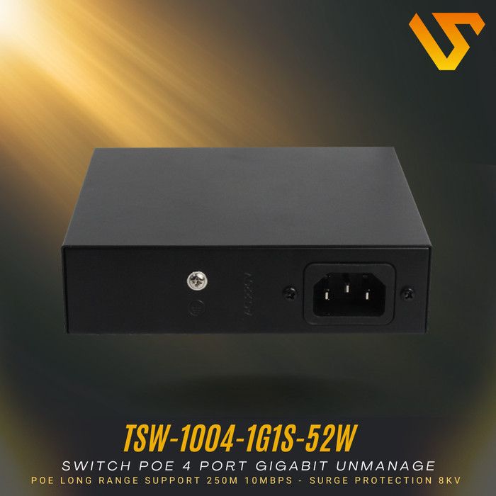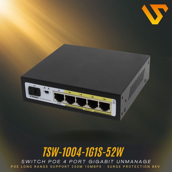Tarmoc TSW-1004-1G-1S-52W 4 Port Gigabit POE 802.3af/at Switch 52 watt