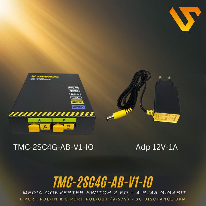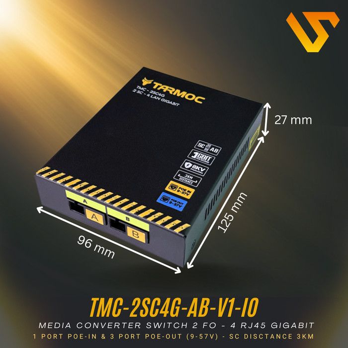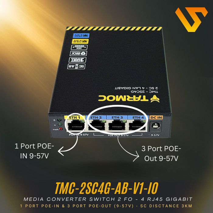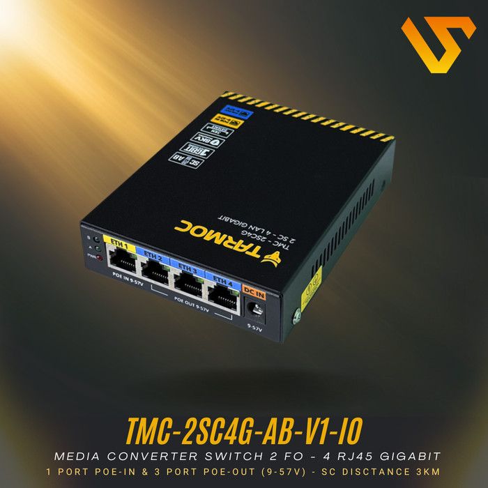 Tarmoc TMC-2SC4G-AB-V1-IO | Switch 4 Port Gigabit POE + 2 SC FO | Switch 4Port IP Camera CCTV POE in POE Out 9-57V