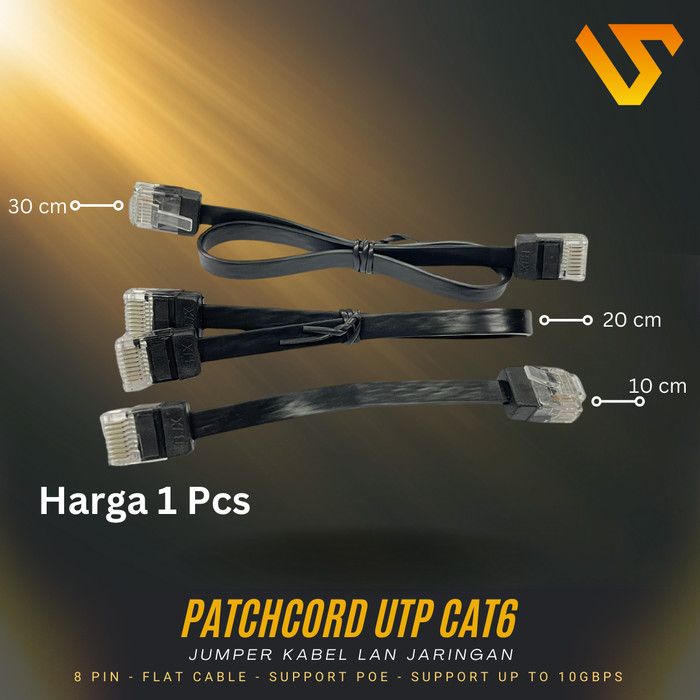 Pathcord UTP Cat 6 Slim Warna | Jumper Kabel LAN Jaringan 10cm - 30cm - Hitam, 10CM