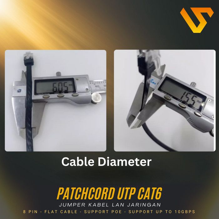 Pathcord UTP Cat 6 Slim Warna | Jumper Kabel LAN Jaringan 1m - 3m - Hitam, 1 Meter