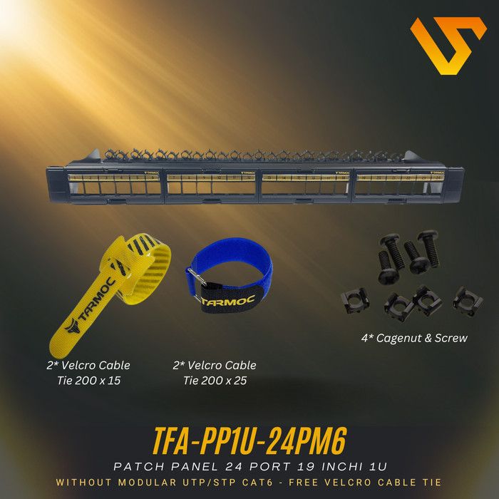 Tarmoc TFA-PP1U-24PM6 | Patch Panel 24 Port UTP Cat5 Cat6 Tanpa Modular Free Velcro Tie