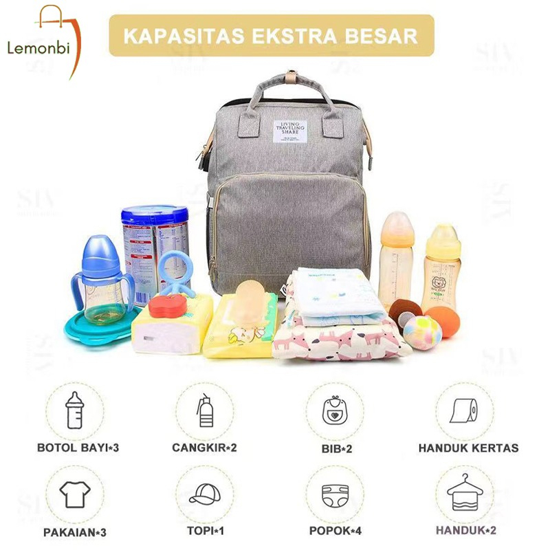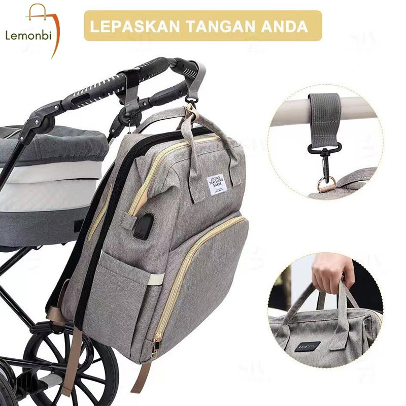 Tas Bayi Multifungsi Tempat Tidur Lipat Baby Diapers Bag Perawatan Tas Perlengkapan Ransel Backpack CANVAS ANTI AIR
