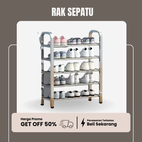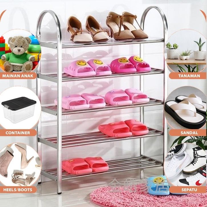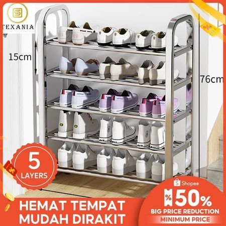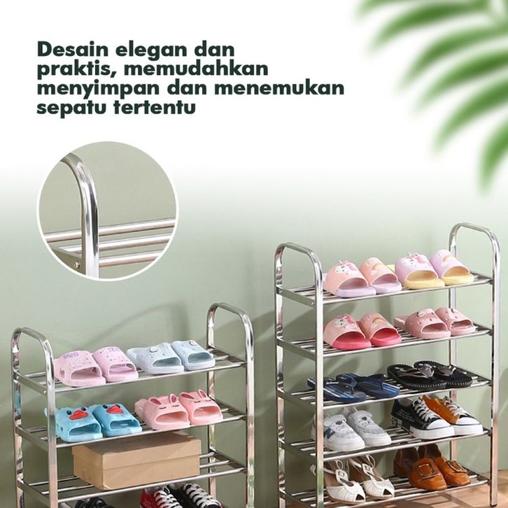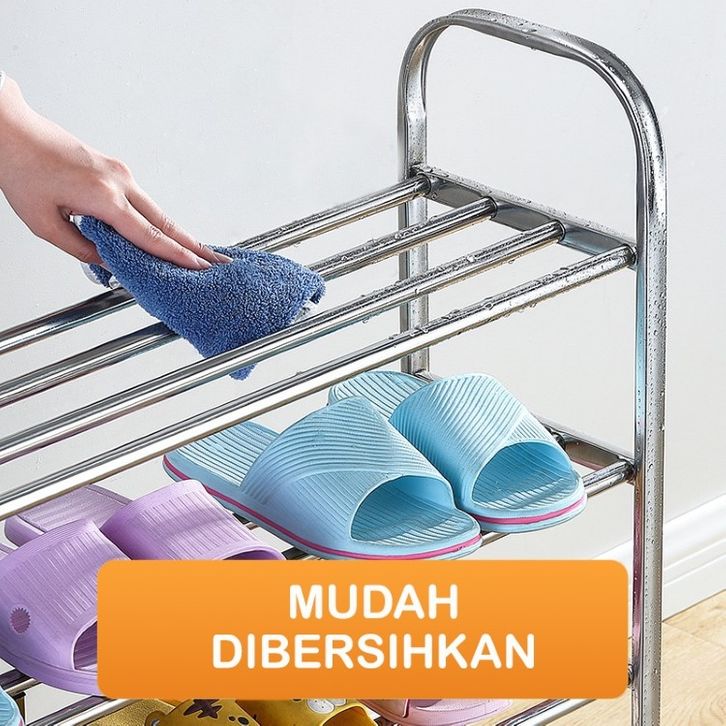 Rak Sepatu Model Sekarang Tertutup Susun Minimalis Stainless Steel Portable Kuat Tempat Penyimpanan Sepatu Sandal Multif