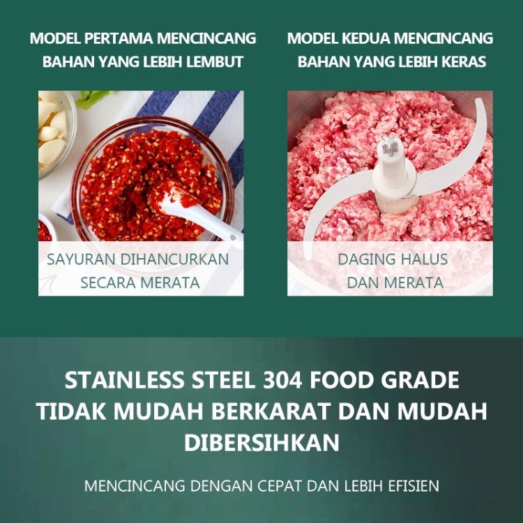 Advance Food Chopper Blender Penggiling Daging 2L Baja Tahan Karat Listrik Meat Grinder Chopper Daging