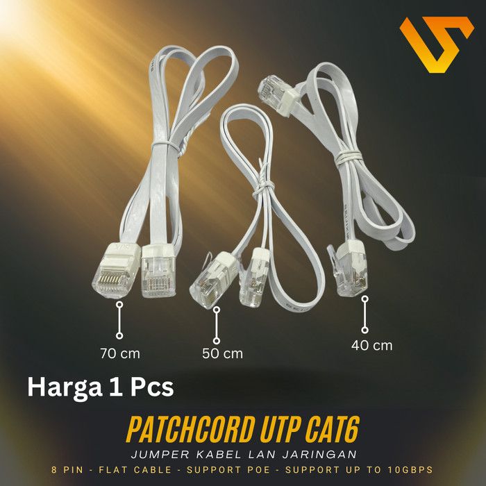 Pathcord UTP Cat 6 Slim Warna | Jumper Kabel LAN Jaringan 40cm - 70cm - Putih, 40CM