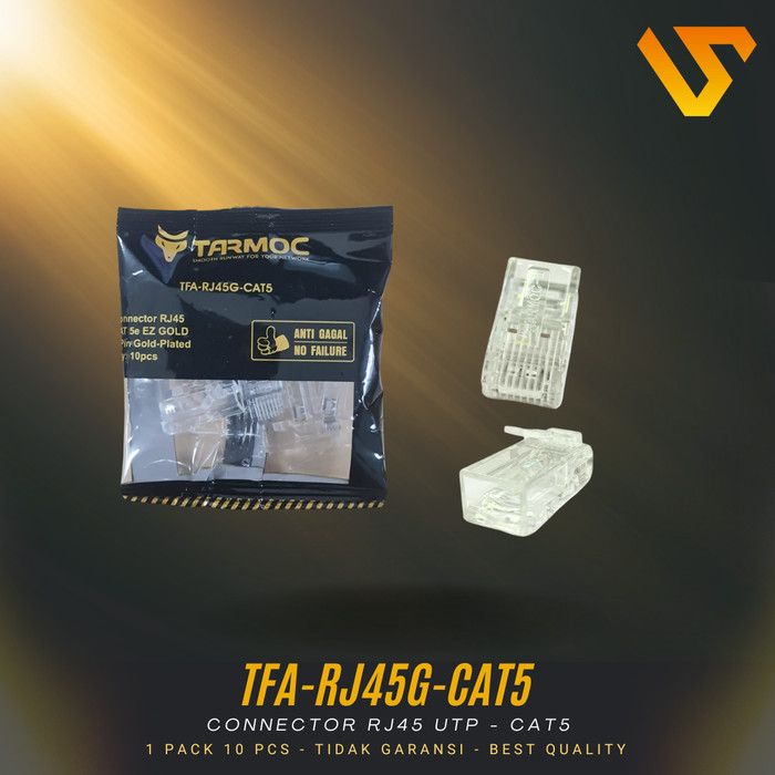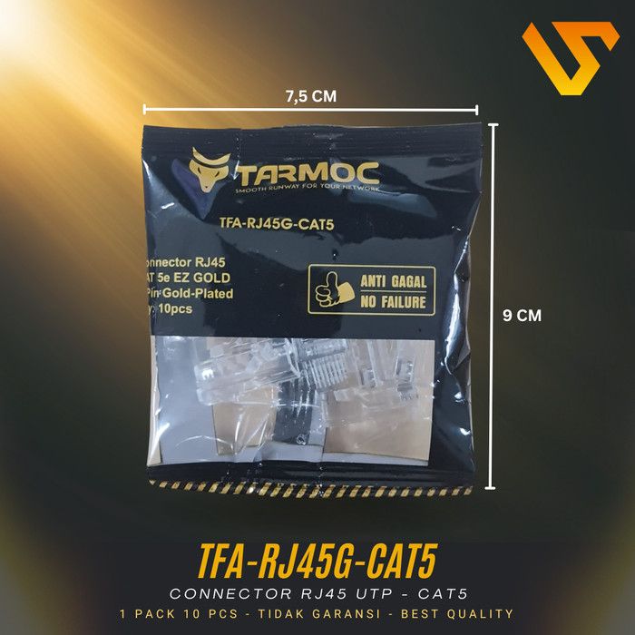 Tarmoc TFA-RJ45G-UTP CAT5 | Connector RJ45 UTP Cat 5 EZ Gold Anti Gagal 10 pcs