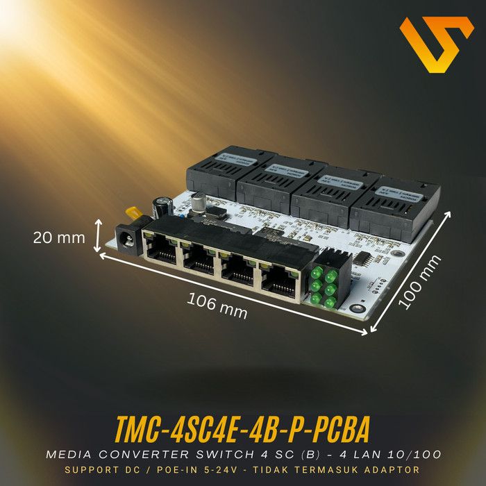 Tarmoc TMC-4SC4E-4B-P-PCBA | Media Converter 4FO 4LAN 4SC 4LAN 10/100 POE IN (5-24V) 4 SC 4 LAN 4 FO 4 LAN