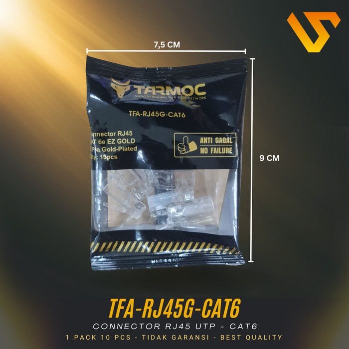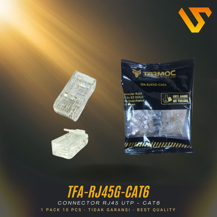 Tarmoc TFA-RJ45G-UTP CAT6 | Connector RJ45 UTP Cat 6 EZ Gold Anti Gagal 10 pcs