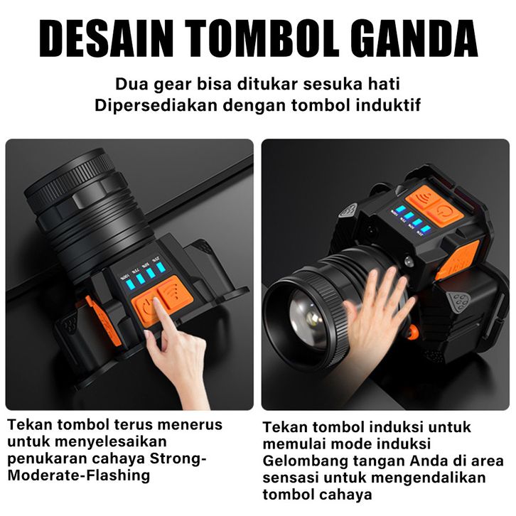 Linix Senter Kepala Led T8 Zoom Super / Lampu Depan Tahan Air Sensor Gerak / LED Senter Super Terang / Terang Anti Air /