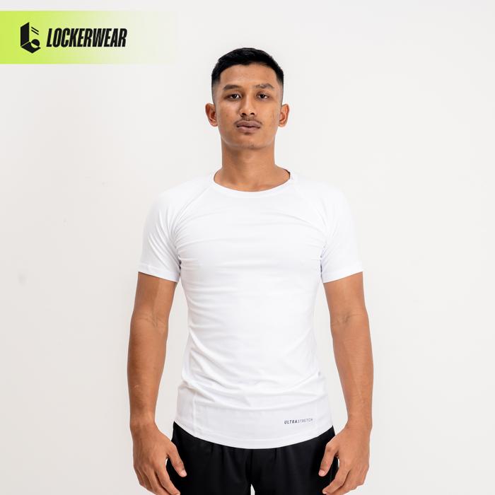 Compression Shirt Kaos Short Sleeve Putih Polos Baju Ketat Manset Baselayer Olahraga Pria Gym