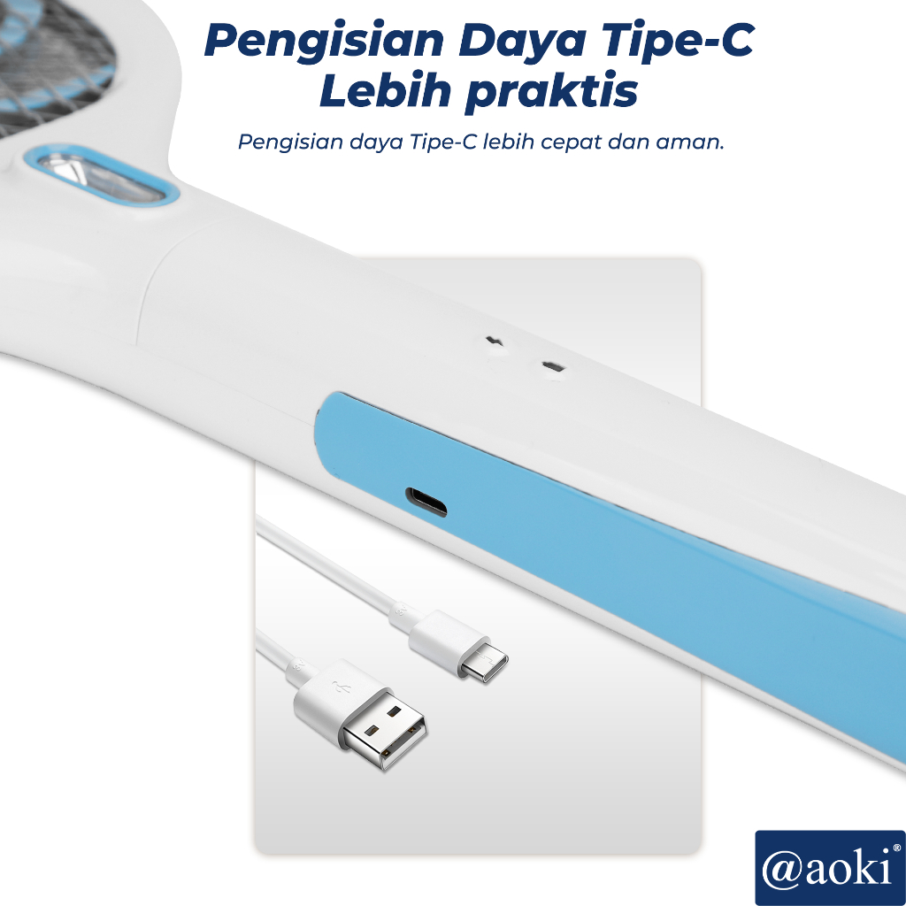 Raket Nyamuk Listrik Aoki Model Unik Cas Kabel Tahan Lama Baterai Lithium Type C