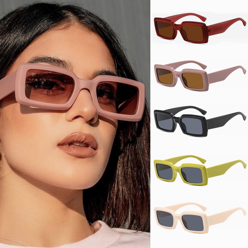 Kacamata Hitam UV400 Bentuk Persegi Panjang Motif Leopard Gaya Retro Untuk Wanita Fashion - SO