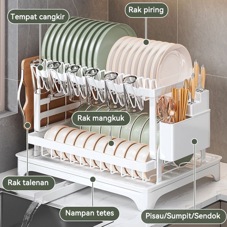 Rak piring wastafel Rak Penyimpanan Stainless Steel Penyelenggara Dapur Baki Peniris Otomatis Sinki Rak Pinggan Mangkuk