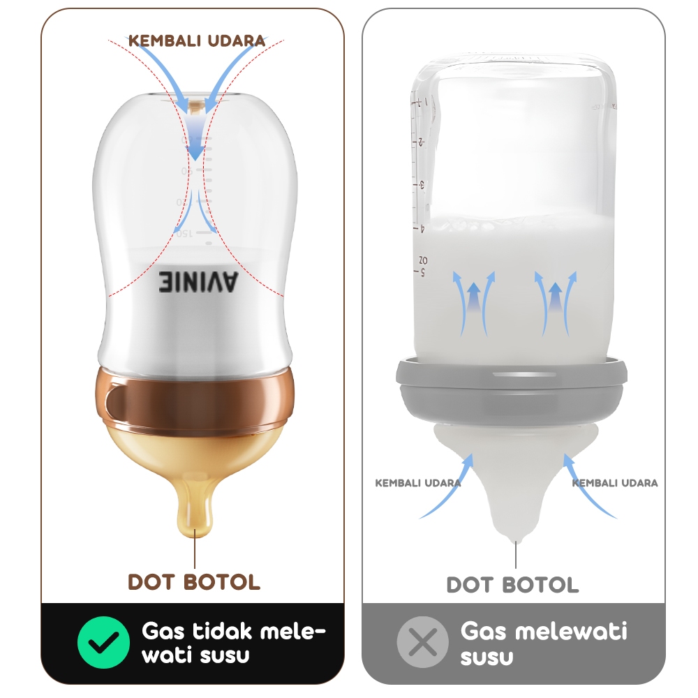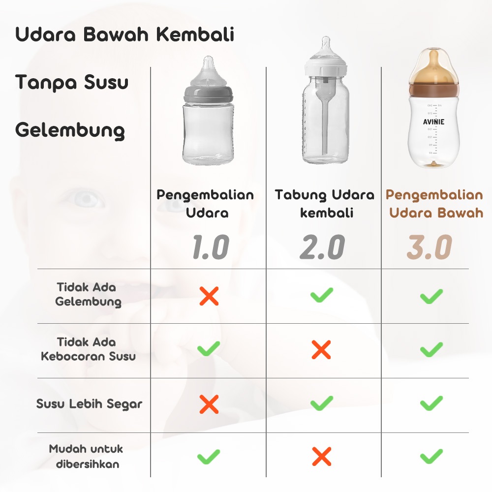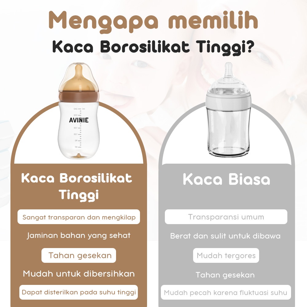 AVINIE Dot Bayi Botol Susu Kaca Anti Kolik Botol Wide Neck Newborn BPA Free 160ml 240ml AVGB16