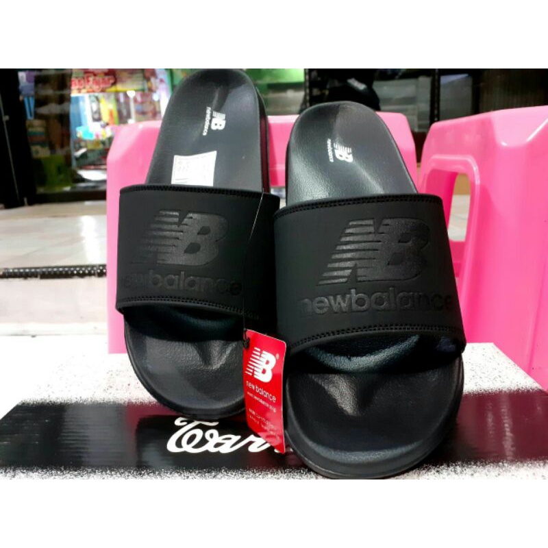 SANDAL SLOP PRIA LOGO NB HITAM ORIGIANL MURAH