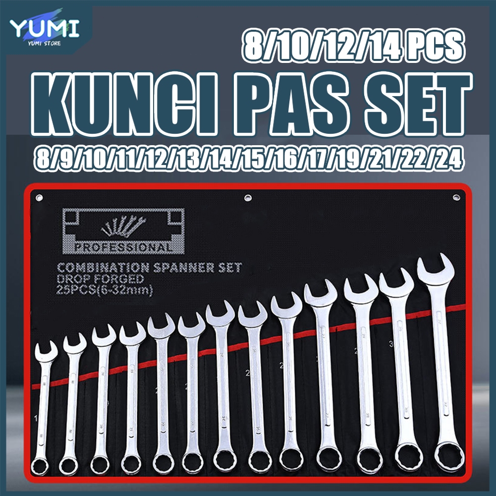 KUNCI RING PAS SET/ 8 /10/12 /14 PCS 8-24MM KUNCI PAS/RIGINAL 100 PERSEN/KUNCI PAS SERBAGUNA SET/LENGKAP PERKAKAS REPARASI MOBIL RUMAH TANGGA