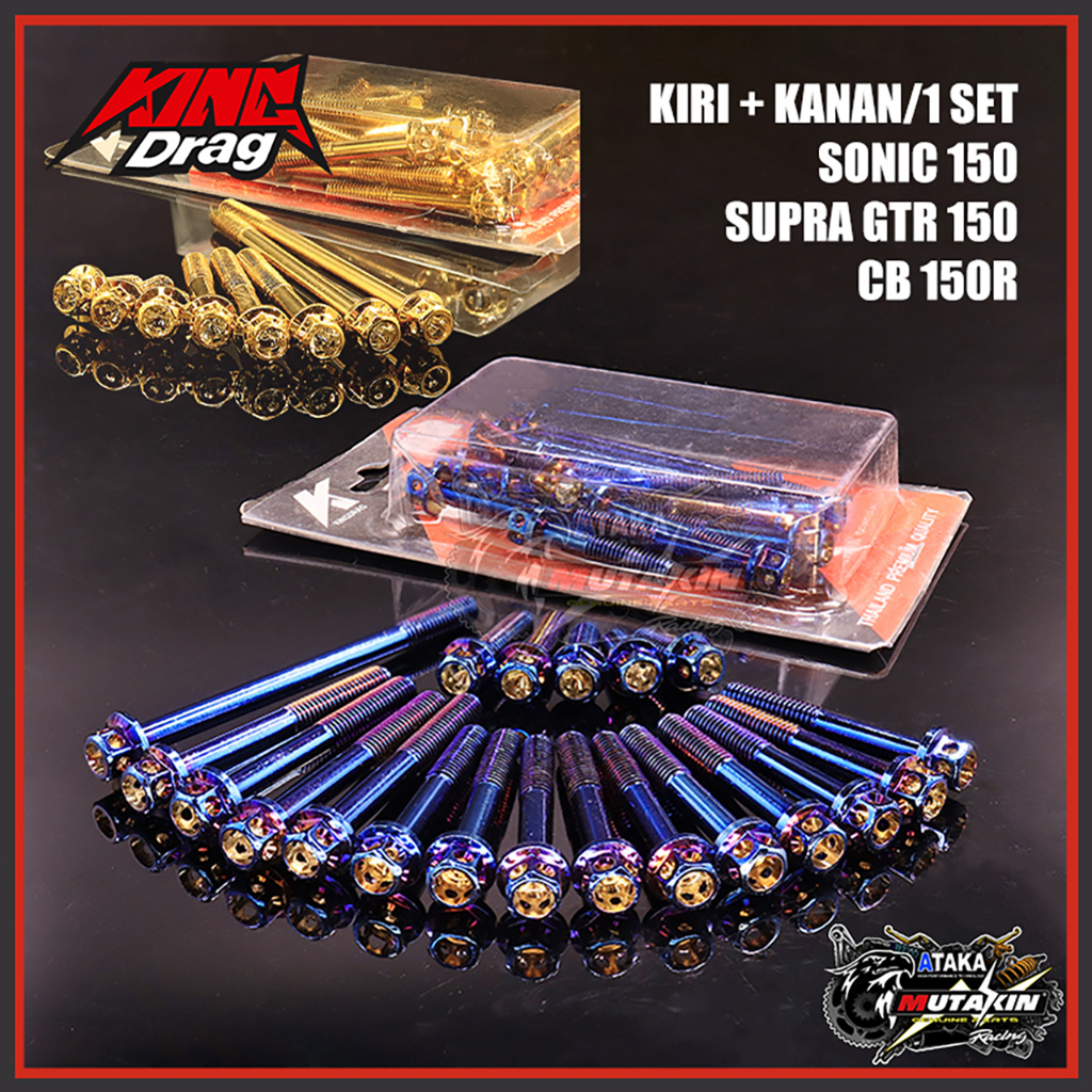 KINGDRAG MUTAKIN BAUT PROBOLT BLOK MESIN SET HONDA SONIC 150 SUPRA GTR 150 CB 150R TITANIUM EMAS